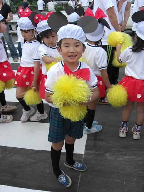 開通記念に白山保育園のミッキーとミニーが花を添えました。親としてはなんとしても撮らねば・・・子供たちをビデオで一生懸命追いかけました。