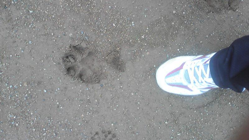 準備をしていた朝のことですが、グランドに大きな足跡が点々とありました。最初は小さかったのですが、最後のほうは何と人の足ぐらいになっていました。まさか熊?ちなみに私の足は27センチです。