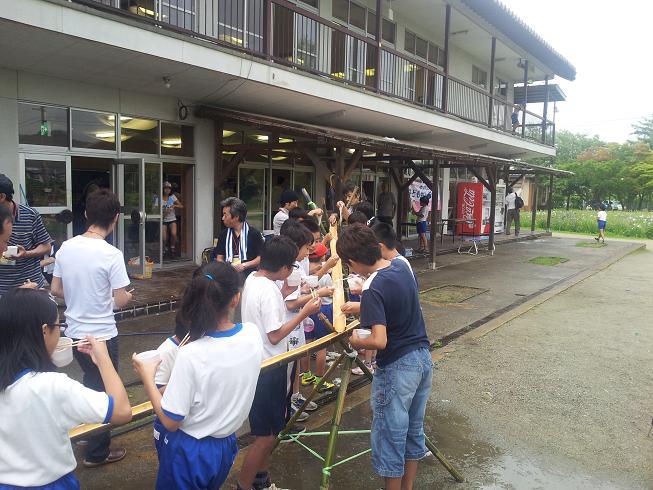 長井市中央地区子ども育成協議会リーダー研修会が行われました。雨の中でしたが子供たちは元気いっぱいで活動していました。流しソーメンは雨の中で味が薄かったかも?
