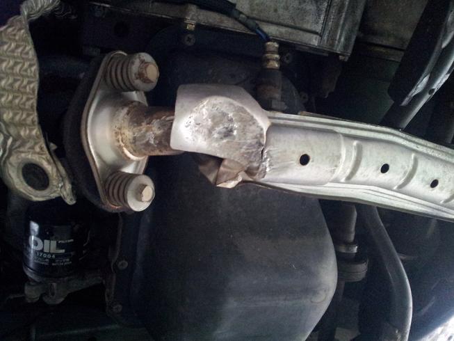 エンジン音が大きくなったとのこと。エキゾーストパイプが破損しています。