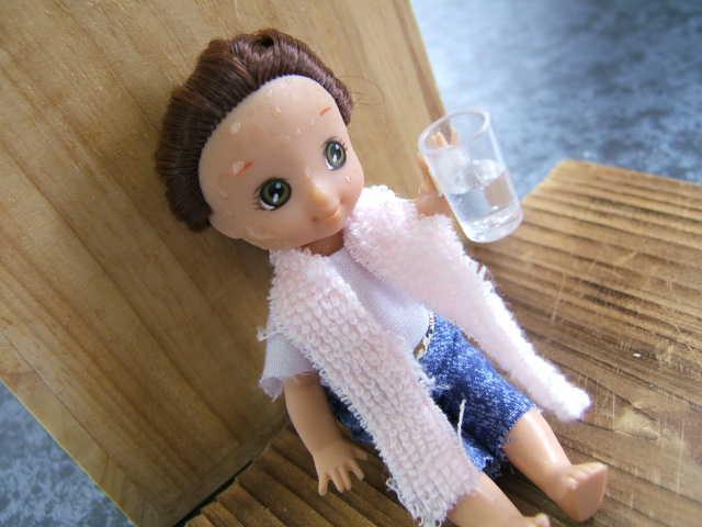 手頃なおんぎょちゃんはどーにか見つかったのですが、「岩盤浴中はこまめに水分補給を」という説明を入れるカットでは、おにんぎょちゃんにペットボトルを持たせたい。「Toy shopに行けば売っているだろー」とタカをくくっていたですが、これが全然見あたらないのです。ミニチュアのプレミアムシリーズ「ドラッグストアバージョン」にはあるのだけど、ペットボトル1本のおまけを当てるために買い続けるのは効率悪すぎ。
