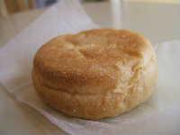 今回は私にとって初物が多かったです。イングリッシュマフィンも実は初体験。両面がこんがり、中はもちっと焼き上がり、表面にはコーンミールがふってあります。