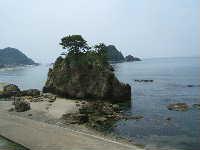 由良温泉のホテル八乙女から見える「白山島」。東北の江ノ島と呼ばれているそうな。
