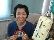 その後ウェイで打ち合わせ。デザイナーのフジサンに見せたら、「手芸なら私も」と、福岡のおばあちゃんが作ってくれたというお財布を見せてくれました。