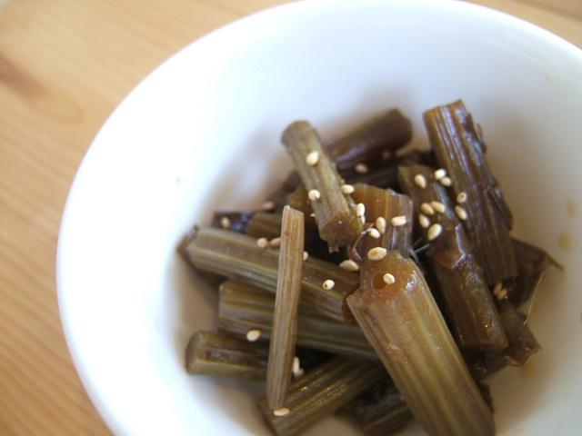 いったん茹でて、一本、一本、皮むき、皮むき。
