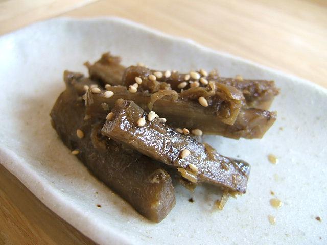 画像はたたきごぼうの炒め煮。