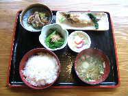 最上町にある川の駅にある食事処であゆの塩焼き定食(850円)を。付け合わせのシイタケの小鉢やふっくらご飯がおいしかったです。名物のしそ巻きもついていました。