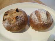 桜田にある生協のベーカリーコーナーで買った、ライ麦のくるみパンといちぢくパン。焼き加減はハードじゃないけど、ナチュラル指向のパンが多いので、時々買いに行きます。