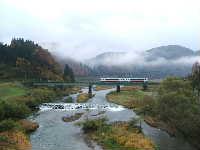 電車の写真を撮るために早朝に山形を出発。戸沢村のとある場所で、足踏みしながら電車が来るのを待つこと15分。無事に撮ることができました!