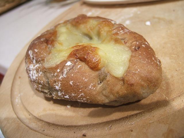 大沼デパートの地下にあるパン屋さんで買った穀物のチーズパン。雑穀入りの生地にチーズのせ。