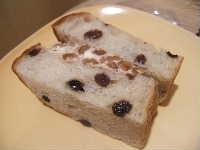 七日町の県民会館隣りにあるパン屋さんの、レーズンパンにくるみ入りのクリームチーズを挟んだパン。何もかもが分厚くて、かぶりつくのも大変そう・・・(^^;;ということで、一枚はそのまま食べて、クリームチーズがついている方はトースターでこんがり焼いて、オープンサンドで食べました。