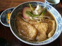 あったかい麦切りのきつね。おっきなお揚げが3枚。思いのほか品よく食べるのに困難をきわめます。箸でちいさくちぎれないし、そのまま口へ持っていくと、ぴゅーって汁がとぶし・・・。
