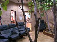 産直コーナーが中心で、大好きなジェラートショップはこちらに移転しておりました(^0^)。一番奥にあったのがリラクゼーションコーナー。マイナスイオンと木の香りの発生機が設置され、森林浴気分が味わえます。どかっとシートにすわったら、あまりの気持ちよさに、ほんの少しばかりねむりこけ・・・ZZZ。館内はすべて、自然塗料のオスモカラーを使っているんだそうです。