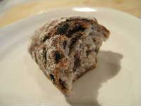 お味の方は(パン好きの方はお分かりになるかと思いますが)、もちろんそれほどじゃぁないです(^^)。ドライフルーツを使ったパンの場合、釜から出したての生地は安定していないし、くるみの香ばしさも、レーズンの甘みも染みていないから、それぞれがばらばらにコーフンしている感じです。