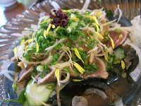 江俣に出来た和食屋さん。こちらは鰹のたたき定食(700円)。ものすごーく身の厚いかつおで、口の中でぶんぶんしてました。ボリュームもあるので、男性でも満足できると思います。