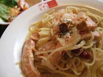 かつて『イタトマ』だったお店です。パスタランチ(ワンコイン〜)は数種類からチョイスしでき、サラダと飲み物のセットで800円位。そのほかデザートセットもありました。写真はエビとサーモンのペペロンチーノ。