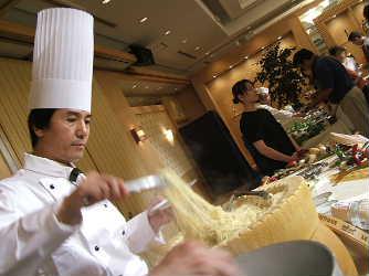 ビアフェスタの取材に行ってきました。写真は名物のパルメジャーノパスタ。チーズの上にあっつあつの茹でたてパスタをどさーーっとのせて、ばぁーーっと絡めてサーブされます。