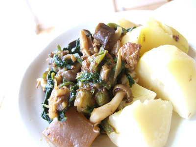 カレーを作ったときに何気なく入れてみたら、これが自分的に大ヒット!皮は特別味がないので、カレーの旨味が適度に浸みておいしいのです。写真は茹でたべにあかりのじゃがいもに添えたスイカレー。