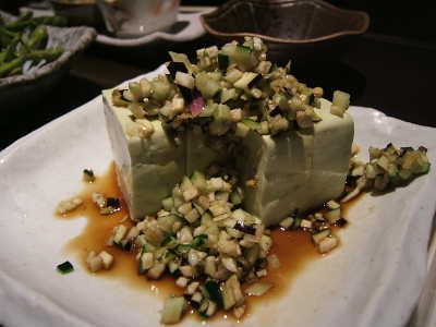 撮影が無事に終了して、夜はロハスクラブネットワークの代表Bさんと、山形メンバーSさんと『花膳』へ。これまでほんの数回メールのやりとりはしていたものの、代表のBさんとは初顔合わせ。仙台までの出張があり、わざわざ山形まで足をのばしてくださったのです。『花膳』でしか飲めないという月天酔という地酒と芋煮、写真の青豆豆腐とだし、だだちゃ豆、ダチョウの刺身など、山形づくしでオーダー。
