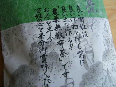 生協の共同購入で買った緑茶。パッケージのコメントが素敵です(^^)。