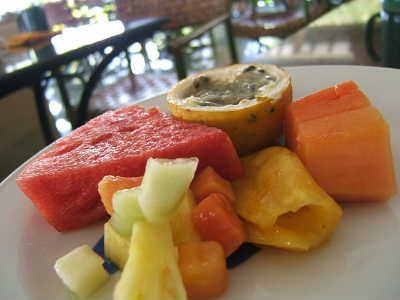 ホテルの朝食で特に感激したのは、濃厚なマンゴーと爽やかなパッションフルーツ。果物のおいしさはいうまでもありません。ただね、スイカとメロンは味も食感も尾花沢&庄内産にはかなわないです。
