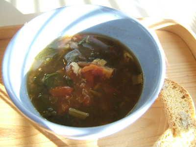 かぶと大根の甘酢しょうゆ漬をつくったのですが、ちょっとだけ残ってしまい、ニンニクとトマトを炒めてお湯を足したものに合わせ混ぜ、卵を溶いてタイ風(?)のスープをつくりました。適当だったわりには、おいしかったです。でも見た目はイマイチ〜(^^;;