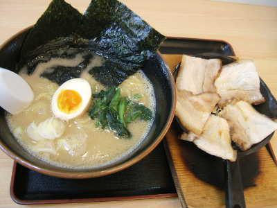 横浜発の家系ラーメン。醤油は有機栽培の大豆を使った本醸造、通常の5倍以上の材料を18時間以上かけて煮込んだスープ、歯ごたえのある無添加の特注麺。「山形にはないパンチのある味に衝撃をうけて、ラーメン1本でお店をやることにした」そうで、出来が悪ければ「臨時休業」の看板を出すとか。写真はもっか一番人気の〈鉄板チャーシューメン(750円)〉。ぷりっとした太麺で、スープはとろりとクリーミーな醤油とんこつ。ランチタイムはごはんが無料です。