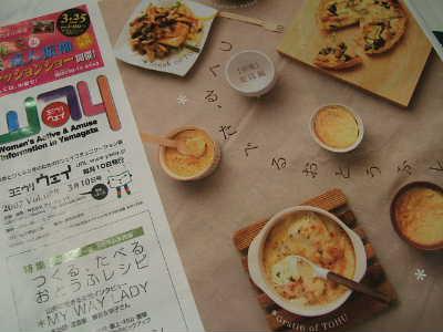 まもなく4月号でちゃいますが〜、3月号はおとうふレシピの特集でした。成沢にある「やっこ処」さんに全面的にご協力をいただきまして、お豆腐の調理バリエを紹介しています。