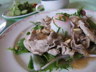 写真は月替りランチの1つ「豚しゃぶ梅風味」。サラダ、スープ、コーヒー、デザート付きで1050円。シェフ特製のスープはお替り自由です。一種に行った友達はミックスコロッケをオーダー。さすがホテルのコロッケはひと味違う〜と言ってました。