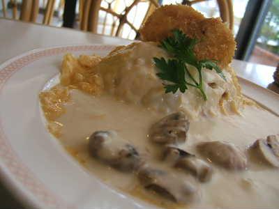 山形では老舗のレストラン。ひさしぶりに行ってきました。写真は9月のランチのオムライス。卵は村山の紅輝卵、舟形町のマッシュルームを使ったホワイトソースで、さすが地元産きのこ。味が濃い〜っ。