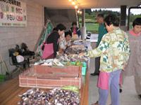 6時過ぎに出て行ってみると、縄文市場が開かれていた。