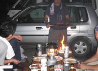火から遠ざけたり、火が収まると、近づけたりと忙しい。