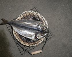 アジの開きをじっくりと焼く。
