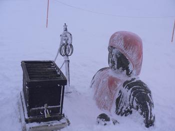 頂上の地蔵まで一気に登るとパウダースノーだ、