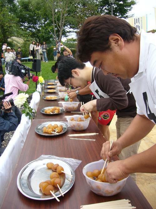 今週土曜日、11日から13日まで川西ダリヤ園で開催される「かわにし秋まつり」。今年も『全国玉こん選手権』を実施します。一定時間内に1串4個の玉こんにゃくをどれだけ作れるか?・・単純明快な競技です。刺した玉こんは全てあなたのもの。優勝商品「牛肉」を目指して是非参加してください!
