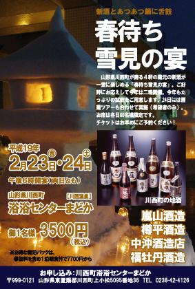 山形県川西町が誇る4軒の蔵元の新酒が一堂に楽しめる「春待ち雪見の宴」。ご好評にお応えして今年は二晩開催となります。今年もたっぷりの試飲をご用意いたします。