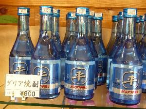 川西ダリヤ園は本日、8月1日にオープンしました。昨年、観光協会売店の土産品で人気商品となった樽平酒造の「ダリア焼酎」。ダリヤ球根のエキスと米焼酎をブレンドしたもので、昨年は2400本限定販売。今年は720mlが5000本、300mlが2000本の限定販売です。同売店には、2種類のダリア焼酎がズラリ並んでいました。ぜひ、ご賞味ください。なお、価格は720mlが1,500円、300mlが600円です。