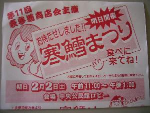 2月2日(土)、川西町上小松の表参道商店会主催による「第11回寒鱈まつり」が川西町中央公民館(役場隣)で開催されます。時間は午前11時から午後1時まで。置賜地区内での寒鱈まつりは唯一ここだけ。ぜひ、お越しください。お楽しみ抽選会もありますよ。
