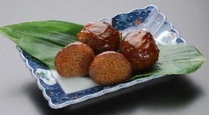 川西町上小松で開発販売している米沢牛おむすび「牛賜(ぎゅうたま)」。