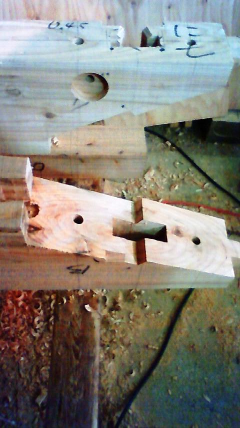 ちなみに柱の真上で継ぐために、ほぞが下から上まで通るようにしております。