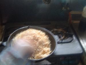ここら辺で「ほし」と言われるお菓子づくりに挑戦しました。チャーハンではありません。干したご飯を油で揚げて、砂糖と醤油で味付けをしました。この味付けが難しい・・・