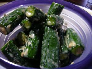 普通のきゅうり漬のように見えるが、紅大豆の味噌を使った浅漬け。これもよかった・・。