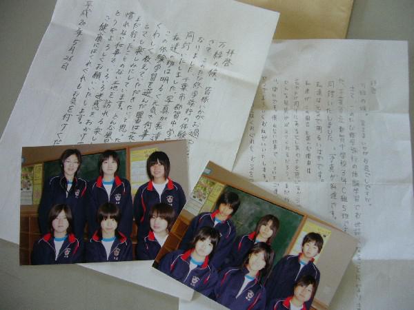 ▼千葉の中学生の教育旅行。生徒たちからお手紙が届きました。