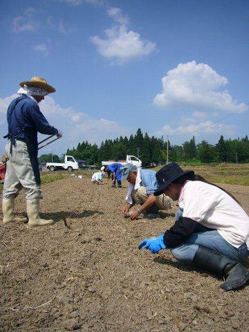 6月21日(土)、30℃を超す暑さの中、夢里農場(代表 登坂賢治)で紅大豆オーナーによる種まきが行われました。