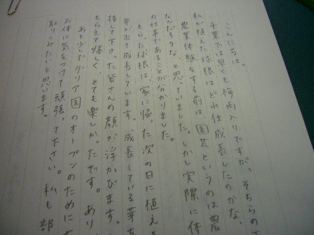 先月5日に川西ダリヤ園でダリヤの球根植えを体験された千葉県都賀中学校3年生のみなさんから手紙が届きました。