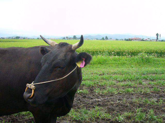 写真を撮られて恥ずかしそうな母牛の住まいは、玉庭放牧場ではありません。