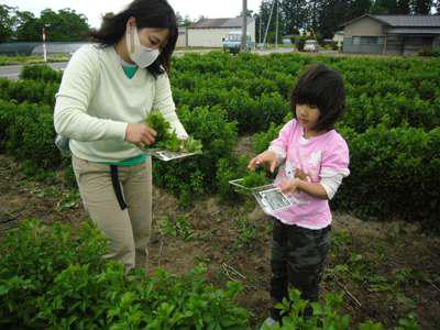 ▼東京都杉並区の小学生がうこぎ摘みと料理体験