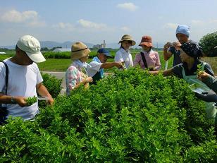 和田弘子さんから本日のうこぎの摘み取り体験の説明や井上会長からはうこぎについてわかりやすい説明があり、皆さん興味津津でした。