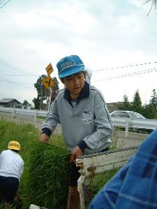 浦田英明さん(玉庭)では、今週末予定の田植えに備え、4名の生徒が苗運びをしているところでした。