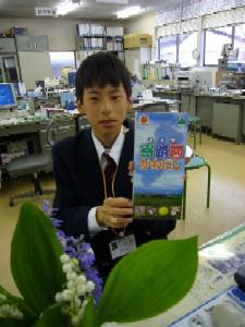 なお、写真は、本日、キャリア教育実習中の高橋和樹くん(玉庭中学校2年生)です。ちょっと表情がかたいかな?